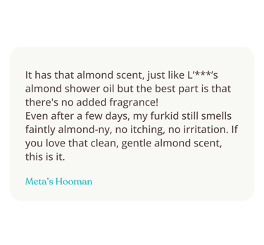 Inspired by the almond shower oils we adore ourselves, it’s safe for every furkid, giving them the same skin-loving care we’d want for us. No nasties—just soft, joyful care in every wash for our furkids.